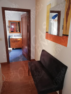 Se alquila piso amueblado en Olivenza, muy cercano al colegio Francisco Ortiz. Se trata de una vivienda ubicada en una segunda planta de un edificio con ascensor, que está compuesta por recibidor, salón comedor amplio, cocina amplia con un pequeño lavadero, dos dormitorios, uno de ellos con un cuarto de baño incluido, el segundo es un cuarto de baño central. Ambos tienen plato de ducha. La vivienda dispone también de aparatos de aire acondicionado con bomba de calor, así como un armario empotrado muy amplio en el dormitorio principal. Todas las habitaciones del piso tienen ventanas hacia la calle. Se pueden ver más fotos en la web, "fincasolivenza.com". Solo se alquila a personas que acrediten capacidad de pago mediante declaraciones de IRPF, nóminas, etc..... No sé aceptan mascotas.